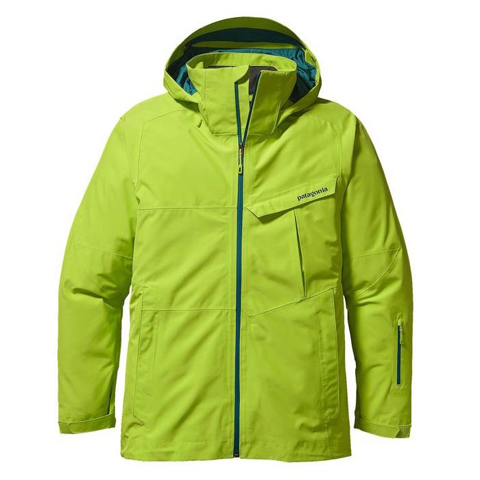 With excellent hand feel, waterproofing and breathability, the Patagonia Powder Bowl Jacket is a straightforward solid jacket. The dual layer polyester Gore-Tex fabric works wonders for waterproofing and windproofing while remaining breathable combined with the wicking mesh lining. Coated zippers are watertight and sealed, and pit zips offer quick cooling. Active Junky testers loved the zipper flap on the audio-compatible breast pocket, and the hood that’s perfect sized to fit a helmet. Nothing too fancy, and not too much. The lower-down hood attachment point was also a bonus, as the position prevents dumping a hood-full of snow down your back.