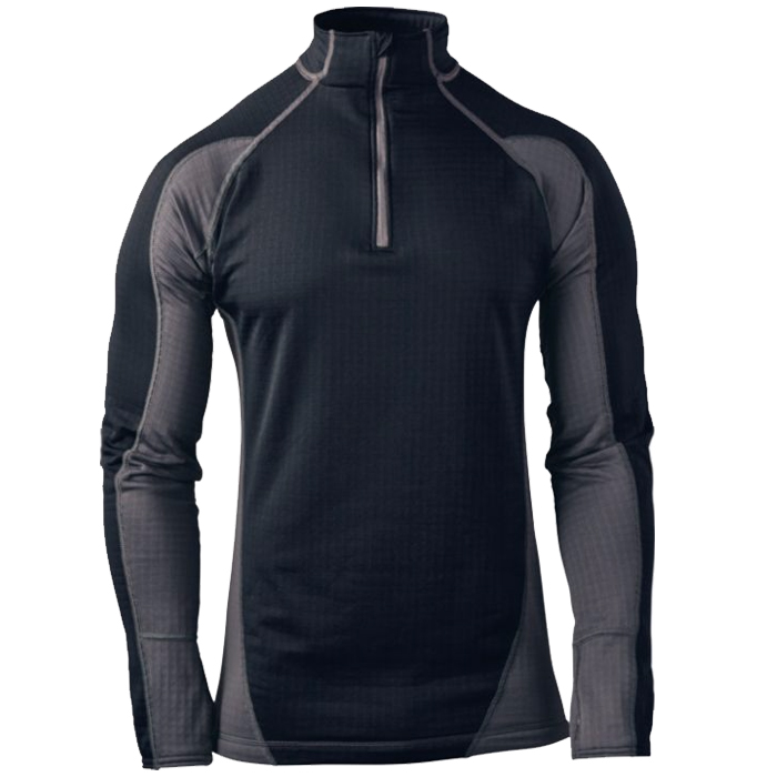 The official name includes Polartec Power Dry Polar Weight ¼ Zip. We’re calling it the right choice for colder conditions. Without bringing the stink or adding excess bulk. The stretch of 100% polyester counts when arm and torso movement are essential while flatlock seams prevent chafing. Long in back but not short on performance, this athletic black piece builds upon Polartec, a tester favorite across a wide range of adventure scenarios. The ¼, storm-flap zip allows temperature management with or without additional layers over it.