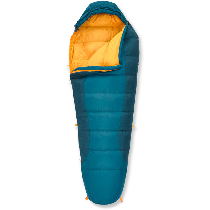 If you’ve ever watched faulty zippers tear fabric in their malevolent snaggleteeth, the very thought of a zipper-free bag should bring tears of joy to your eyes. Not only does this design eliminate pesky zips, but it also accommodates fidgety sleepers, thanks to the integrated comforter and wide torso. Though steep for a summer bag, this bag is stuffed with 850-fill DriDown; Sierra Designs’ premiere hydrophobic treated down.